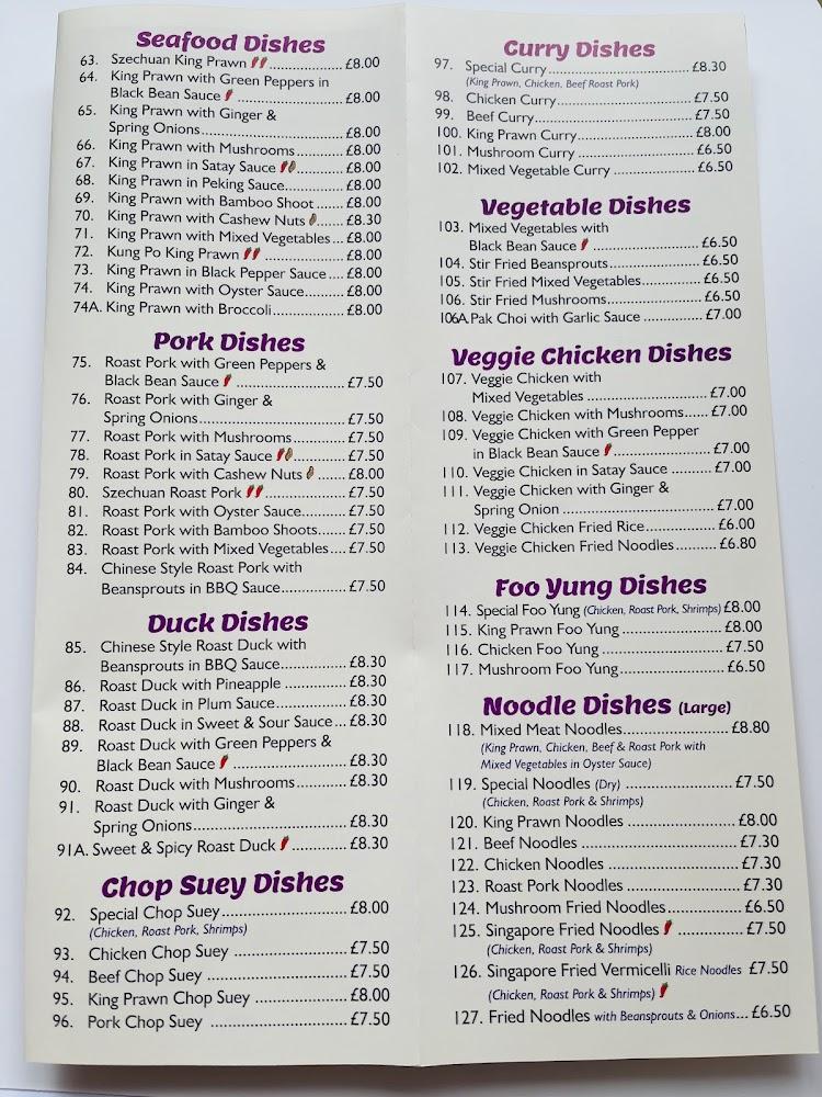 The menu at Springfield Wok And Fish is extensive, showcasing a well-rounded selection of Chinese dishes and classic British fare. From tantalizing starters, such as crispy seaweed and prawn crackers, to hearty mains like sweet and sour chicken and traditional fish and chips, the options satisfy varied cravings. Notable categories include delectable beef with black bean sauce and vibrant vegetarian dishes that highlight wholesome flavors. Special fried rice and chow mein options ensure that every palate is catered to, while the dessert selection, albeit small, offers sweet finishes like banana fritters in syrup. With over 90 dishes to choose from, every visit feels unique, offering something new for diners to discover or savor their favorites.
