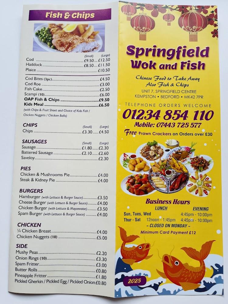 Springfield Wok And Fish is nestled in the bustling Springfield Centre on Orchard Street in Kempston, Bedford. The location is easily accessible, featuring both free street parking and a convenient parking lot, perfect for those quick takeout visits. This family-run business thrives on creating an inviting environment, welcoming guests with a friendly smile and swift service. Though primarily a takeaway, there are a few casual dining options inside, enabling patrons to enjoy their meals on-site, albeit briefly. The atmosphere is relaxed, making it perfect for families, friends, or anyone looking to grab a delicious meal. With their commitment to quality and excellent customer service, Springfield Wok And Fish has grown to be a beloved hub for locals seeking satisfying meals. Its open hours throughout the week ensure convenience, and accessibility features cater to all visitors, further adding to its charm in this vibrant community.